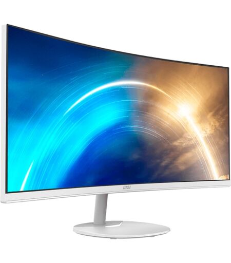 MSI''s PRO MP341CQWDE er en forretningsskærm med en enorm arbejdsflade og en bred vifte af funktioner til træthedsfrit arbejde. Den refleksfri skærm har en diagonal på 86 cm (34") og arbejder med VA-teknologi, som muliggør god visning selv fra større betragtningsvinkler. Krumningen af skærmen med 1500R giver en fordybende seeroplevelse og er ligesom antiflimmerteknologien let for øjnene. PRO MP341CQWDE understøtter en opdateringshastighed på op til 100 Hz og har et vippestativ. Den høje opløsning på 3.440 x 1.440 pixels muliggør knivskarp visning af indhold. PRO MP341CQWDE kan tilsluttes via HDMI eller DisplayPort og har højttalere. ...
