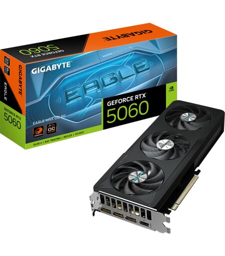 GIGABYTE GeForce RTX 5060 EAGLE MAX OC 8G er et avanceret grafikkort drevet af NVIDIAs GeForce RTX 5060 GPU. Den kraftfulde GeForce RTX 50-grafikkortserie er baseret på NVIDIA Blackwell-arkitekturen og tilbyder nye niveauer af spilrealisme, hastighed og energieffektivitet, AI-funktioner såsom billedgenerering, multi frame-generering og realistiske VR-oplevelser. Andre funktioner inkluderer Real-Time Ray Tracing, Ray Reconstruction, NVIDIA Ansel, med omfattende værktøjer til at tage skærmbilleder i spil, samt NVIDIA G-SYNC, G-SYNC HDR, NVIDIA DLSS 4, ShadowPlay, Highlights, NVENC Gen 9, AV1 Encoder og Decoder. GPU''en installeret på GIGABYTE GeForce RTX 5060 EAGLE MAX OC 8G har 3840 CUDA-kerner. 8 GB GDDR7-hukommelsen har en 128-bit hukommelsescontroller. ...