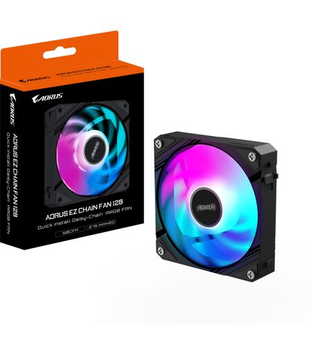 Aorus EZ Chain-ventilatorerne fra Gigabyte er nemme at installere takket være daisy chain og plug-in-mekanismen. Flere blæsere kan tilsluttes med kun ét kabel. Det nye design af ventilatorblade øger både luftstrøm og tryk og reducerer dermed støj. ARGB-blæserbelysningen kan synkroniseres med andre enheder. ...