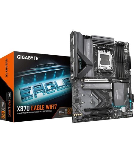 GIGABYTE X870 EAGLE WIFI7 er baseret på AMD X870-chipsættet og understøtter AMD-processorer til socket AM5. Den har fire DDR5-slots til op til 256 GB RAM. Andre funktioner i GIGABYTE X870 EAGLE WIFI7 inkluderer en PCIe 5.0 x16 slot og to PCIe 3.0 x16 slots (x1 baner). Derudover har GIGABYTE X870 EAGLE WIFI7 8-kanals lyd, en 2.5 Gigabit LAN-grænseflade, WiFi 7, Bluetooth 5.4, fire SATA3-porte, tre M.2-porte og en række USB-porte. ...