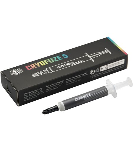 På grund af populariteten af CryoFuze Violet termisk pasta tilføjer Cooler Master yderligere 5 farver med CryoFuze. Ved at bruge nanopartikler muliggør CryoFuze fremragende varmeledningsevne på alle proceskomponenter for optimal varmeoverførsel. Den afbalancerede viskositet og elektrisk isolerede sammensætning giver ultimativ vedhæftning med ubesværet påføring og rengøring. De ikke-ætsende og oxidationsbestandige egenskaber forhindrer størkning og efterlader metalkontaktflader intakte. CryoFuze 5 har et alsidigt temperaturområde og tilbyder stabilitet fra -50 °C op til 240 °C. ...