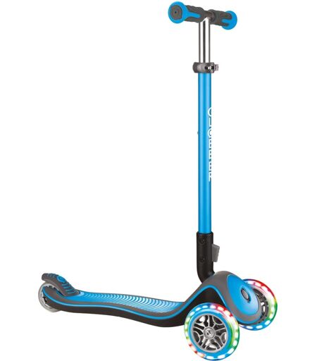 Elite Deluxe Scooter tilbyder en masse køresjov med et farvet styr og optimerede tofarvede håndtag. Et nyt designkoncept gør den nem at folde sammen. Et andet træk ved scooteren er de lette ruller. Det nylonforstærkede, meget stabile 2-lags dæk er sænket og ekstra bredt, så begge fødder lettere kan sættes op. Slidbanen med to injektioner er lavet af gummieret skridsikkert materiale. Således sikrer dækket optimal kontrol og øger komfort og kontrol. Takket være den omskiftelige styringslås kan kørsel læres nemt og sikkert. Styret er højdejusterbart og kan dermed tilpasses optimalt til barnets størrelse. De ergonomiske håndtag i bi-injection design er holdbare og komfortable. Elite Deluxe har også en optimeret og særlig bred Hi-impact dobbeltindsprøjtningsfriktionsbremse med egerbeskyttelse samt pu-ruller med superhøj rebound-støbt i 120 mm og 80 mm og ABEC 5 kuglelejer. ...