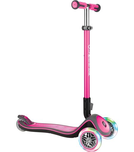 Elite Deluxe Scooter tilbyder en masse køresjov med et farvet styr og optimerede tofarvede håndtag. Et nyt designkoncept gør den nem at folde sammen. Et andet træk ved scooteren er de lette ruller. Det nylonforstærkede, meget stabile 2-lags dæk er sænket og ekstra bredt, så begge fødder lettere kan sættes op. Slidbanen med to injektioner er lavet af gummieret skridsikkert materiale. Således sikrer dækket optimal kontrol og øger komfort og kontrol. Takket være den omskiftelige styringslås kan kørsel læres nemt og sikkert. Styret er højdejusterbart og kan dermed tilpasses optimalt til barnets størrelse. De ergonomiske håndtag i bi-injection design er holdbare og komfortable. Elite Deluxe har også en optimeret og særlig bred Hi-impact dobbeltindsprøjtningsfriktionsbremse med egerbeskyttelse samt pu-ruller med superhøj rebound-støbt i 120 mm og 80 mm og ABEC 5 kuglelejer. ...