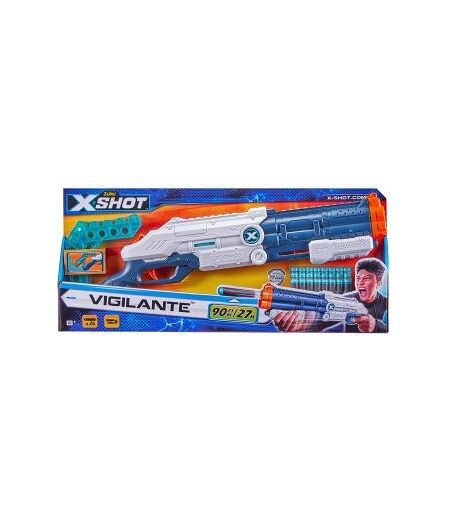 X-Shot Vigilante er en sej shotgun blaster med to løb, hårdt design og pumpefunktion og kan skyde pile op til 27 meter.Funktioner:Vigilante: X-Shot Vigilantes pumpefunktion giver dig muligheden for at genoplade hurtigt og skyde dine modstandere mod en afstand på 27 meter. Ved at vippe ned forsiden af tønden kan du fylde kammeret med pile. Den kommer med en skulderstøtte som også kan bruges til at opbevare 8 dartpile Indeholder: 1 x X-Shot Vigilante Blaster 24 x skumpile Anbefales fra 8 år. ...