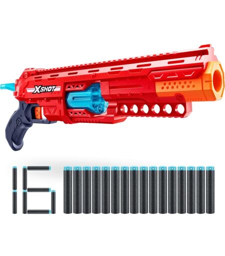 Godt udrustet til den næste kamp med Reflex Excel Caliber Blaster! Denne dartblaster har et roterende løb og kan skyde op til 6 pile med lynets hast. En ultrahurtig ildmekanisme til intense kampe. Resultatet: Kaliberen skyder op til 6 pile på 30 sekunder. Og med en rækkevidde på op til 27 meter. Og for at han ikke skal løbe tør for forpustelse midt i kampen, har han en hukommelse til yderligere 6 blastere om bord. Denne blaster leveres med 16 pile. ...