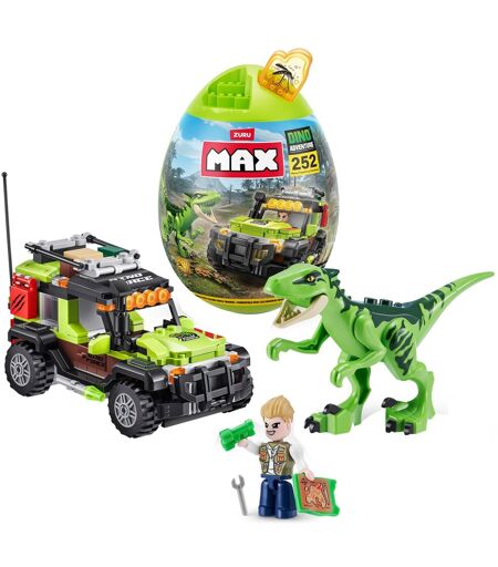 Tag på dinosaureventyr med ZURU MAX! Byg en forhistorisk verden med MAX'' klodser ved at samle dinosauren og lastbilen. Sæt figuren i lastbilen, og kør af sted for at jage den gigantiske dino. Bevæg dinosaurens arme for at forsvare dig mod forfølgerne, og åbn bagagerummet på lastbilen for at fange dinoen. ...