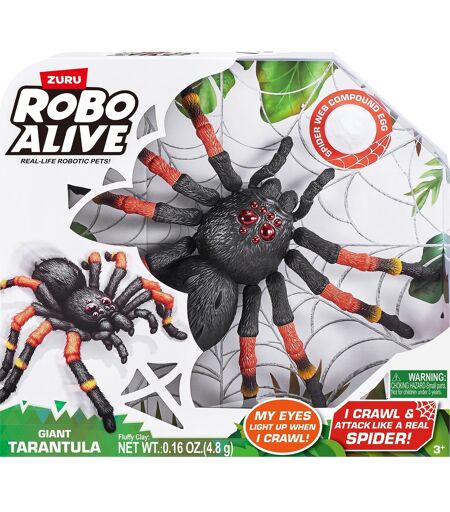 Al opmærksomhed - her kommer den imponerende Robo Alive Tarantula fra ZURU! Dette uhyggelige edderkoppedyr bruger intelligent teknologi til at efterligne et rigtigt dyr ned til mindste detalje. Gem dem under dine søskendes senge, eller skub dem ind under spisebordet for den ultimative spøg. Pludselig dukker hun op, hendes øjne skinner uhyggeligt! ...