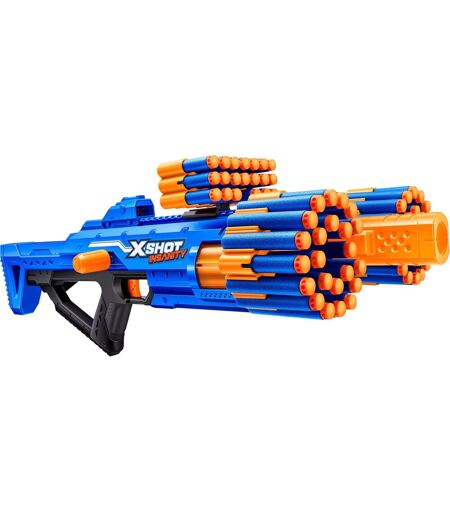 Utrolig action med X-Shot Insanity-blasterne! X-Shot Insanity Berzerko har nok kraft til at ramme mål fra op til 27 meter væk. Denne blaster rammer konkurrenterne med sin hurtige affyring af 8 pile med lynets hast. Hans magasin tilbyder i alt plads til yderligere 66 pile. De 48 X-Shot-pile, der følger med denne blaster, har Air-Pocket-teknologi, der giver hurtigere og mere præcise skud på længere afstande. ...