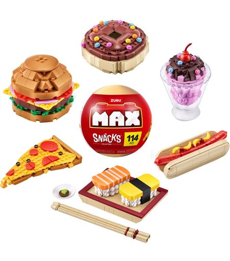 Den nye MAX Premium Snacks Collection har de lækreste snacks! Hver kapsel indeholder op til 200 førsteklasses byggeklodser til at bygge, samle og udstille dine yndlingssnacks. Der er i alt 6 forskellige snacks at samle. Hvad er der på din MAX-menu - burgeren, sundae eller sushi-tallerkenen? ...