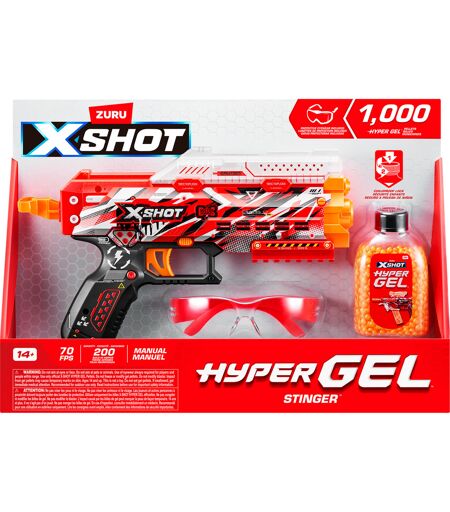 Her kommer XSHOT Hyper Gel Stinger! denne gelblaster affyrer Hyper Gel-kugler med en hastighed på 45 meter i sekundet ved hjælp af en simpel "pull to prime"-mekanisme. Stinger har en kapacitet på 250 gelkugler. Den leveres med 1000 gelkugler og beskyttelsesbriller til den ultimative hyper-gel-kamp. ...
