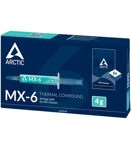ARCTIC Cooling MX-6 er en termisk pasta, der giver enestående varmeoverførsel fra komponenter til kølere. ARCTIC Cooling MX-6 højtydende termisk pasta er meget nem at påføre. Den nye tekstur gør ren påføring på chippen til en leg. Den elektrisk ikke-ledende pasta placeres mellem CPU/GPU''en og tilsvarende kølere for at optimere varmeoverførslen fra chippen til køleren. MX-6 er hverken elektrisk ledende eller kapacitiv. Dette eliminerer risikoen for kortslutninger og udladninger. ...