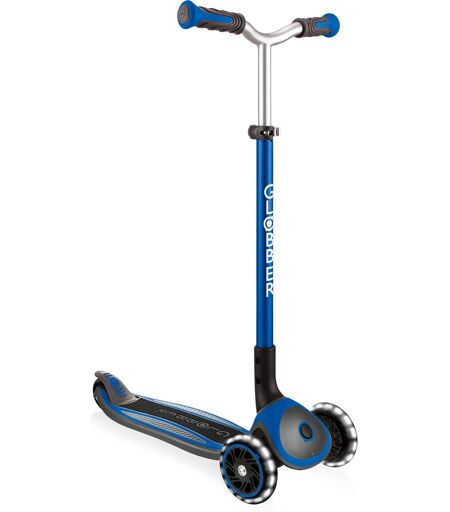 Master Lights scooteren i det nye design byder på en masse køreglæde. Styret er ekstra bredt og 5 gange højdejusterbart for optimal tilpasning til barnet. Takket være den omskiftelige styrelås og de ergonomiske håndtag kan kørslen læres nemt og sikkert. Det ekstra lange og brede bi-injection kompositdæk med blødt, behageligt EVA-skum i midten på en lav metalforstærket struktur kan bære op til 50 kg. Chassiset med kugleleje ABEC 5 tjener den optimale kontrol. Master Lights har også en ekstra lang og bred bagbremse samt superhøje rebound cast PU-hjul med lecht funktion foran (batterifri) i 120 mm og 80 mm. Efter kørsel kan Master Lights let foldes op af det patenterede foldesystem. ...