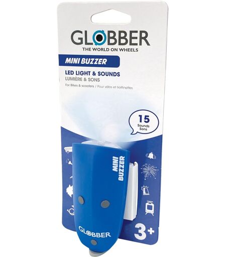 Mini Buzzer fra GLOBBER er et hvidt glødende, batteridrevet LED-lys og klokke i ét! De tre lysindstillinger kan justeres individuelt til konstant lys, blinkende eller hurtigt blinkende. Derudover er der lydfunktionen med et bredt udvalg af 15 lyde: Uanset om det er cykelklokke, fyrværkeri, Dixie-horn, prut, hooter, laser, magisk tæppe, magi, gammel trompet, politibil, racerbil, bakvogn, tog eller ulv - alle lyde er også sjove og høje! Minisummeren fastgøres nemt til løbehjulet, løbecyklen eller cyklen med en justerbar silikonestrop. Den drives af 2 medfølgende AAA-batterier. Den drives af 2 medfølgende AAA-batterier og har ikke StVZO-godkendelse. ...