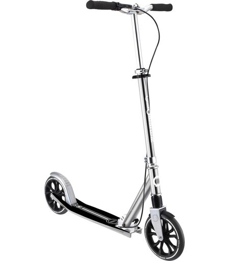 Oplev byen med stilfuld køreglæde i et vintage design! NL 205 Deluxe fra GLOBBER er et stort løbehjul til hurtig og stilfuld bevægelse. Dette løbehjul af høj kvalitet står på egerhjul med en diameter på 205 millimeter med støbte PU og ABEC 9 kuglelejer. Den bageste friktionsbremse er udstyret med en skridsikker bremsepedal og understøttes af håndbremsen monteret på det højdejusterbare styr. Et stativ er fastgjort til det ekstra dybe aluminiumsdæk med skridsikker slidbane. Stænkskærmen på forhjulet øger komforten, når du kører på våde overflader. Det ekstra brede styr i BMX-stil sikrer en behagelig køreoplevelse og gør NL 205 Deluxe til en pålidelig følgesvend til længere ture og daglig brug - til børn fra 8 år og derover, teenagere og voksne! ...