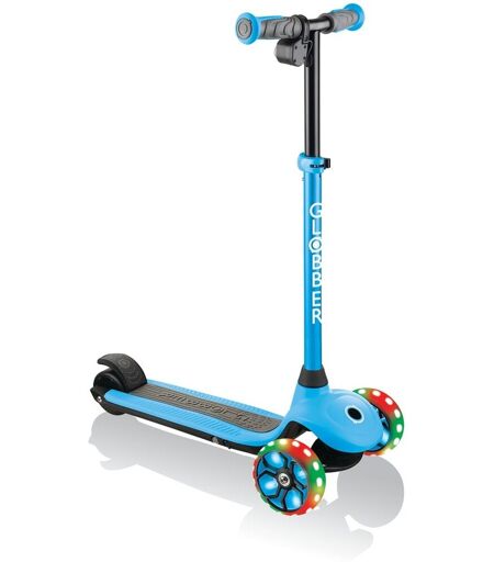 One K E-Motion Plus 4 Plus fra Globber er en e-scooter af høj kvalitet med 3 hjul til børn. Den har en 80-watt motor, der fungerer med to hastighedsindstillinger: begyndere fra 6 år kan bruge tilstanden op til 6 km/t, avancerede ryttere kan accelerere op til 10 km/t i den anden tilstand. Det dobbelte bremsesystem med E-ABS og mekanisk bagbremse sikrer den nødvendige sikkerhed. Dette løbehjul ruller på støbte PU-hjul og ABEC 7 kuglelejer. Forhjulene lyser kraftigt, så snart køretøjet begynder at bevæge sig - takket være batterifrie LED''er med dynamoteknologi. Det højdejusterbare styr med quick release og sikkerhedslås samt det forstærkede dæk med skridsikker slidbane sikrer langvarig køreglæde. ...