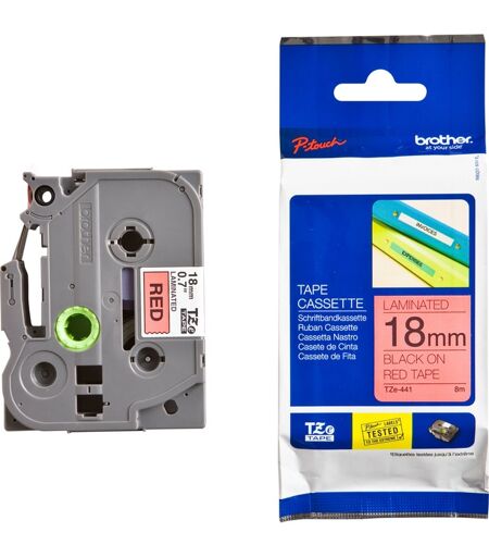 Brother TZe-441 etiketbånd Sort på rød, Tape