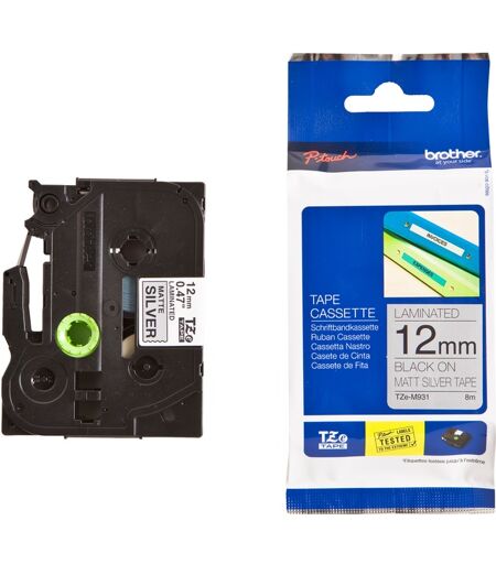 Brother TZe-M931 etiketbånd Sort på sølv, Tape