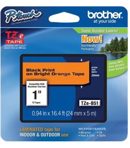 Brother TZe-B51 etiketbånd Sort på fluorescerende orange, Tape