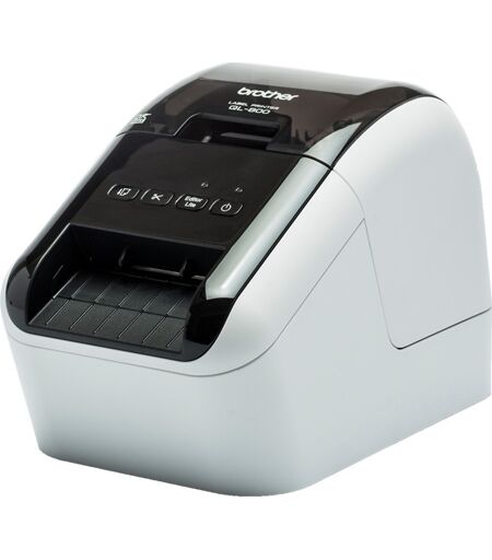 Brother QL-800 labelprinter QL-800 er en lynhurtig og alsidig labelprinter, som tilsluttes via USB til PC eller Mac. Den kan printe i sort og rød, så du kan fremhæve vigtig information på dine labels. (Print i rød forudsætter brug af specialrullen DK22251 ). Til Windowsbrugere findes funktionen, ”Plug&Print”, som ikke kræver nogen form for installation. Sæt blot USB-kablet i og print. Den høje opløsning er perfekt til print af logoer, billeder og tekst på labels. Du kan let designe professionelle labels med høj opløsning til dokumenter, arkiv, kartotekskort, mapper, navneskilte og meget mere. Den indbyggede automatiske kniv gør det nemt at printe mange labels på én gang. Termoprinter Understøtter mindst 20 forskellige DK-ruller (Sort tekst) Printer i sort/rød tekst med specialrulle Automatisk ”Plug&Print”-funktion til Windowsbrugere Printer op til 93 labels/min. Skarpe udskrifter i op til 300 x 600 dpi Op til 62 mm brede labels Gratis software til labeldesign, stregkoder m.m. Udskriv fra Word®, Excel® og Outlook Automatisk kniv USB-tillslutning Leveres med strøm- og USB-kabel samt to startruller (100 standard-adresselabels + rulle til sort/rød print, 62 mm bred, løbende 5 m) 3 års garanti ...