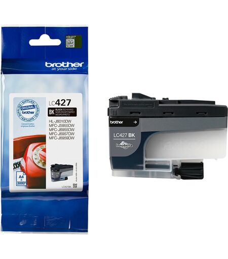 Den blæksorte LC427BK er en original forbrugsvare fra Brother. Rækkevidden af denne patron er op til 3000 sider (ISO). Den er velegnet til forskellige HL- og MFC-serieprintere. ...