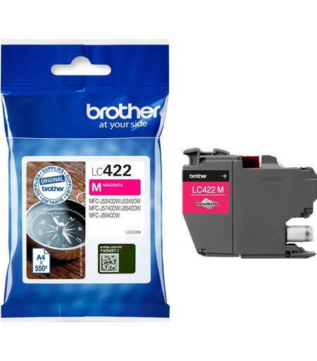Den originale Brother LC-422M (magenta) blækpatron har en kapacitet på ca. 550 sider DIN A4 (ISO). Den er velegnet til MFC-J5340DW, MFC-J5345DW, MFC-J5740DW, MFC-J6540DW og MFC-J6940DW printere. ...
