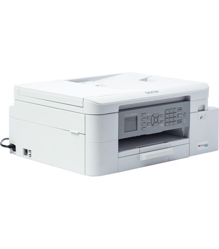 MFC-J4340DWE leverer pålidelig 4-i-1-funktionalitet til hjemmekontoret eller små kontorer. Denne multifunktionsprinter fungerer ekstremt effektivt og med lange udbytter med fire blækpatroner og når en hastighed på op til 20 sider med sort udskrivning og 19 sider farveudskrivning (ISO). Ud over udskrivningsfunktionen er der en scanner med flatbed-enhed og 20-arks feeder samt en kopimaskine om bord. MFC-J4340DWE har grænseflader til WLAN og USB - den understøtter også direkte udskrivning fra mobile enheder, der kører iOS eller Android. På grund af den integrerede faxgrænseflade bliver denne enhed også et faxcenter. ...