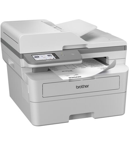 MFC L2980DW udskriver op til 34 sider i sort/hvid i minuttet og tilbyder omfattende funktioner til små arbejdsgrupper eller hjemmekontoret. Ud over en scannings- og kopieringsfunktion med en 50-arks dupleksfremføring på toppen har denne multifunktionslaserprinter med sort/hvid-udskrivningsfunktion også en faxgrænseflade. Den kan forbindes via LAN eller WLAN og understøtter direkte WiFi-udskrivning for nem direkte udskrivning fra mobile enheder med iOS eller Android. Den automatiske dupleksenhed letter dobbeltsidet udskrivning og hjælper dermed med at spare papir. Dette multifunktionelle system betjenes med en touchskærm installeret på fronten. ...