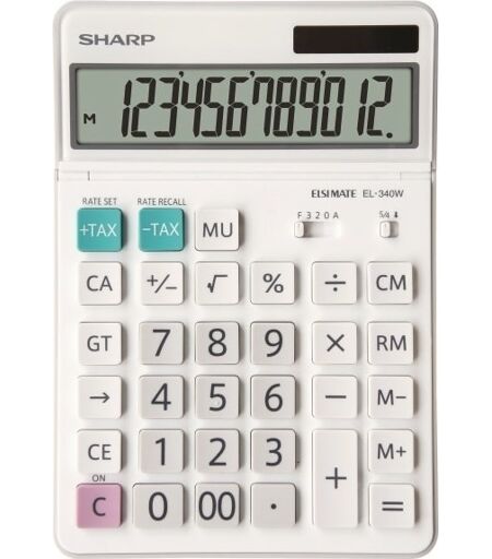 Sharp El-340w Lommeregner, 12 Cifre, Hvid