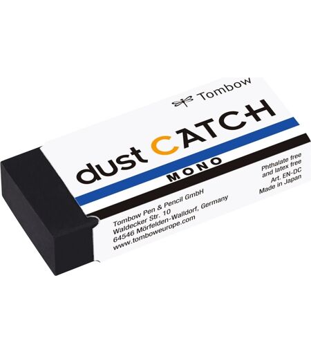 Tombow Viskelæder Dust Catch - Udvisk uden spor, takket være den klæbrige polymerteknologi! Dette smarte Viskelæder fra Tombow opsamler sine egne viskelæderrester takket være dets særlige klæbrige polymerblanding. Dette gør det særligt effektiv at udviske og forhindrer, at tegninger utilsigtet beskadiges af viskelæderrester. Viskelæderet vejer 19 gram, fremstillet af PVC-materiale, der er fri for Ftalater og latex og ærmet består af mere end 50% genanvendt papir. ...