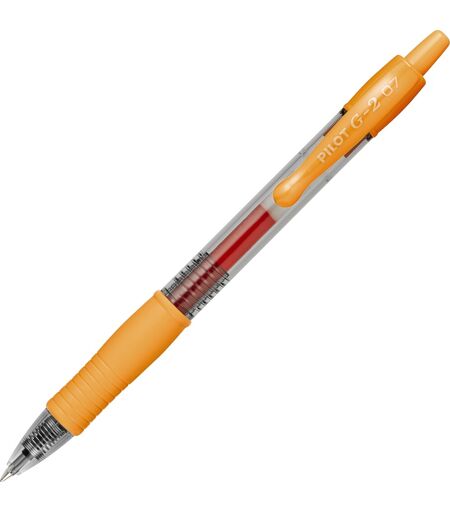 Pilot G-2 rollerpen med medium spids Pilot G-2 rollerpen er en yderst populær gelpen fremstillet med en unik gel-formel som sikrer at blækket først bliver flydende ved kontakt med papir eller en anden skriveoverflade. Blækket har en letflydende gelkonsistens som glider meget let henover papiret, så du oplever en silkeblød fornemmelse og en høj skrivekomfort når pennen bruges. Rollerpennen kombinerer teknologisk ydeevne og funktionelt design og er fremstillet med et ergonomisk gummigreb som giver et godt og fast greb, så pennen er nem at holde om. Det ergonomiske greb giver samtidig pennen en god stabilitet og sikrer at pennen ligger godt og ergonomisk korrekt i hånden, så du undgår at blive øm og træt i hånden når du skriver. Pilot G-2 rollerpen har en meget modstandsdygtig wolframcarbidkugle, som bevarer sin form og er ekstremt slidstærk, hvilket modvirker at pennen klatter mens du skriver. Dertil har blækket en imponerende fyldighed og en utrolig farveintensitet, som tilmed er lysægte. Samtidig har kuglepennen en smart klips så du kan have den siddende b.la. i lommen, på studieblokken eller på omslaget af notesbogen, så den altid er indenfor rækkevidde når du skal bruge den. Farve: Orange Kuglespids: 0,7 mm Stregbredde: 0,32 mm Ergonomisk gummigreb Gelblæk med høj farveintensitet Produceret af 70 % genanvendt plast Producentens varenr.: BL-G2-7-R ...