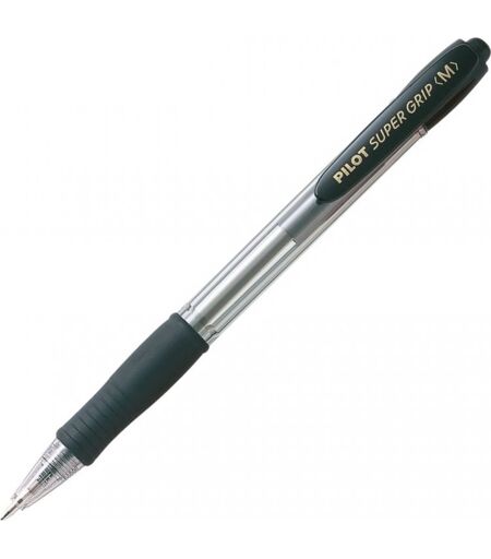 Kuglepen Pilot medium supergrip - sort Kuglepen med trykmekanisme og specialudviklet letflydende oliebaseret blæk. Indeholder et behageligt gummigreb, som giver en bedre gribe komfort samt en kugle af Wolframcarbid, som sikrer at pennen ikke klatter. Kuglepennen har et klart hylster, så blækstanden kan ses. Farve: Sort Fås også i andre varianter Kugle: 1,0 mm Streg: 0,27 mm Producentens varenr.: BPGP-10R-M-B ...