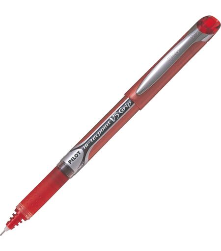 Pilot Hi-Tecpoint V5 Grip Rollerpen med fine spids (0,5 mm)Oplev fordelene ved det populære Pilot V5 design, indpakket i en ergonomisk korrekt rollerpen med hætte. Rollerpennen bruger det smarte Pilot V-system som er en blækregulerende mekanisme. Det giver et jævnt flow af blæk når du skriver. I kombination med rollerpennens stærke nålespids, gør Pilot V5 Grip det muligt at opnå en knivskarp streg.Rollerpennens design gør det nemt at se, hvor meget blæk der er tilbage - men Hi-tecpoint V5 Grip skriver til sidste dråbe! Designet med det behagelige gummigreb gør desuden, at rollerpennen ligger super godt i hånden.Den ekstraordinært robuste kuglespids i wolframcarbid bevarer sin form og styrke, selv efter lang tids intens brug. Det betyder at Hi-tecpoint V5 Grip rollerpennen kan blive ved med at skrive med sin præcise streg. Perfekt til udregninger, tegninger og detaljerede notater.Takket være sin hætte med praktisk clip, kan rollepennen sættes fast i mapper, notesbøger, på blokke, i skjortelommen osv.Farve: RødSynlig blækstandKuglebredde: 0,5 mmFaktisk stregbredde: 0,3 mmProducentens varenr.: BXGPN-V5-R ...