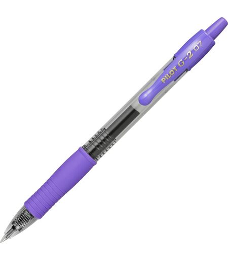 Pilot G-2 rollerpen med medium spids Pilot G-2 rollerpen er en yderst populær gelpen fremstillet med en unik gel-formel som sikrer at blækket først bliver flydende ved kontakt med papir eller en anden skriveoverflade. Blækket har en letflydende gelkonsistens som glider meget let henover papiret, så du oplever en silkeblød fornemmelse og en høj skrivekomfort når pennen bruges.Rollerpennen kombinerer teknologisk ydeevne og funktionelt design og er fremstillet med et ergonomisk gummigreb som giver et godt og fast greb, så pennen er nem at holde om. Det ergonomiske greb giver samtidig pennen en god stabilitet og sikrer at pennen ligger godt og ergonomisk korrekt i hånden, så du undgår at blive øm og træt i hånden når du skriver.Pilot G-2 rollerpen har en meget modstandsdygtig wolframcarbidkugle, som bevarer sin form og er ekstremt slidstærk, hvilket modvirker at pennen klatter mens du skriver. Dertil har blækket en imponerende fyldighed og en utrolig farveintensitet, som tilmed er lysægte. Samtidig har kuglepennen en smart klips så du kan have den siddende b.la. i lommen, på studieblokken eller på omslaget af notesbogen, så den altid er indenfor rækkevidde når du skal bruge den.Farve: VioletKuglespids: 0,7 mmStregbredde: 0,32 mmErgonomisk gummigrebGelblæk med høj farveintensitetProducentens varenr.: BL-G2-7-V ...
