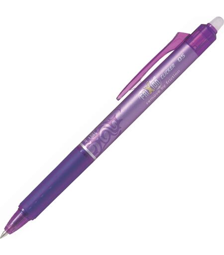 Frixion Clicker med fin spids – den populære pen som kan viskes ud Skriv, slet og ret så mange gange som du vil - det er det smarte ved Pilot Frixion serien. De sletbare kuglepenne bruger det varmefølsomme Metamo-blæk, som forsvinder ved den friktion som opstår, når du gnider den integrerede viskelæder-spids på blækket. Med en Frixion rollerpen i hånden får du altså både alle de mange gode egenskaber ved at skrive med kuglepen, samtidig med at du opnår præcis samme funktionalitet og bekvemmelighed, som når du skriver med blyant, hvor du nemt kan slette og rette i det skrevne. Det helt unikke ved Frixion serien er nemlig at du let kan viske blækket ud, helt uden snulder og uden at skade papiret, så du helt slipper for at skulle bekymre dig om at skrive forkert. Blækfarve: Violet Kuglebredde: 0,5 mm Faktisk stregbredde: 0,25 mm Varmefølsomt og letflydende Metamo gelblæk, som kan udviskes Integreret viskelæderspids Ergonomisk gummigreb Bør ikke bruges til vigtige dokumenter (ikke dokument-ægte) Kan genopfyldes med ny refill Producentens varenr.: BLRT-FR5-V Letflydende gelblæk og silkeblød skriveoplevelse Frixion Clicker er den populære og elskede Frixion kuglepen med praktisk trykknap. Teknisk set er det en gelpen, da den skriver med et behageligt og letflydende gelblæk, som giver en silkeblød skrivefornemmelse og en helt uovertruffen skriveoplevelse. Det flydende gelblæk glider let hen over papiret og tørrer hurtigt, så du undgår at blækket tværer ud, hvilket også gør pennen god til venstrehåndsbrug. Ergonomisk gummigreb for høj skrivekomfort Frixion Clicker har desuden et ergonomisk og integreret gummigreb, som giver et sikkert fast greb om pennen når den bruges. Det ergonomiske gummigreb sikrer samtidig at pennen har en god stabilitet og sikrer at pennen ligger godt og ergonomisk korrekt i hånden, så du undgår at blive øm og træt i hånden når du skriver, hvilket også sikrer en høj skrivekomfort når pennen bruges i mange timer dagligt. Farverigt og funktionelt design Clicker pennen har samtidig et moderne, farverigt og funktionelt design med clips, så den kan sættes fast på skriveblokken, notesbogen, kalenderen eller i skjortelommen, så du altid har den lige ved hånden. Et godt valg til dig som f.eks. skal rette regnskaber, skemalægge, opdatere kalenderen eller løse skoleopgaver. Genopfyld hurtigt og nemt med en ny refill Husk at du altid kan genopfylde din Frixion Clicker rollerpen med nyt blæk hurtigt og nemt ved køb af ekstra-refiller. Ved køb og brug af refiller til dine kuglepenne, sparer du både penge og er samtidig med til at gøre op med ”køb-og-smid-ud” kulturen, så du b.la. er med til at mindske forbruget af f.eks. plastik, da du kan genbruge din yndlingspen igen og igen, fremfor at skulle købe en ny hver gang den løber tør for blæk. ...