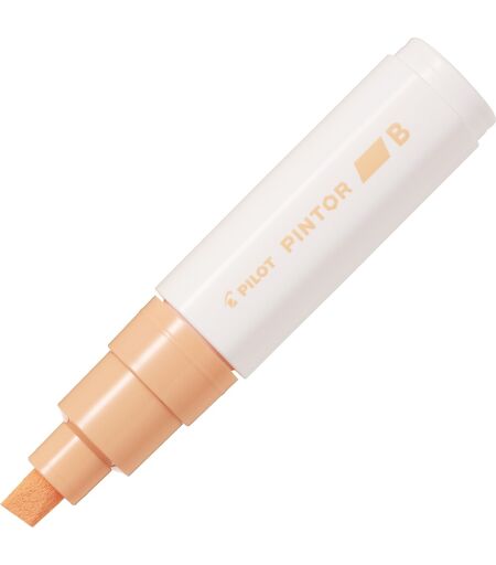 Pintor Classic – kreative DIY markere i fine basisfarver Slip fantasien løs med de farverige Pilot Pintor markere og udforsk dit kreative talent indenfor tegning, farvelægning, dekorering, mærkning, skrivning og kalligrafi. Pintor penne er er de ultimative DIY-penne, som er udviklet og designet til alle former for kreative aktiviteter og projekter. Pilot Pintor markere indeholder pigmentrigt, vandbaseret og hurtigttørrende blæk som har en utrolig god dækkeevne. Den gode dækkeevne og de stærke farvepigmenter sikrer dig de flotteste og klare farver på stort set alle typer overflader, materialer og underlag – også de mørke af slagsen. Brug f.eks. markerne på papir, træ, glas, keramik, plastik, metal og stof. Du får her en marker fra Pintor Fun serien, som består af penne i 6 flotte suppleringsfarver. Suppleringsfarverne tager sig flot ud på mange forskellige overflader og givet et sjovt og farverigt udtryk når du tegner eller skriver. Farve: Lys orange Spids: Broad, bred 8 mm Stregbredde: 8 mm Vandbaseret blæk Hurtigtørrende God dækkeevne Producentens varenr.: SW-PT-B-PO Inden brug skal Pintor markeren rystes, så du kan høre kuglen bevæge sig inde i hylsteret. Klargør spisen ved at trykke den ned mod et stykke papir 3-4 gange, indtil blækket flyder ud til spidsen. ...