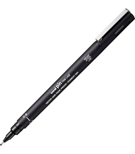 Uni Pin Fineliner – perfekt til præcisionsarbejdePin Fine Line fra Uni-Ball er en sublim kvalitetsfineliner med en udsøgt præcisionsspids. Pennen er en klassiker og er elsket af mange arkitekter, kunstnere og grafiske designere, taget være pennens unikke og eminente præcision, samt modstandsdygtige pigmentblæk, som er både vandafvisende og lysægte så den hverken fader med tiden eller tværes ud i kontakt med vand.Uni Pin 0,9 har en tykkere fiberspids, som er robust og stærk, hvilket gør den ideel til at tegne brede streger og linjer, samt til farvedækning og skygger. Spidsen er beskyttet og understøttet af et lille stålrør, hvilket giver en perfekt præcision med skarpe og klare linjer og samtidig gør pennen velegnet til brug sammen med linealer og skabeloner.Uni Pin er fantastisk til tekniske tegninger, skitser, illustrationer, krydsskravering, skyggelægning og alt andet detaljeret arbejde og er velegnet til både professionelt brug og kreativt hobbybrug.Farve: SortSpids: 0,9 mm Vandafvisende og lysægte pigmentblæk ...