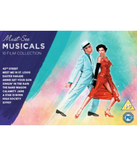 Collection of ten classic musicals featuring stars such as Judy Garland, Fred Astaire, Gene Kelly, Doris Day, Howard Keel and Natalie Wood. In '42nd Street' (1933) Dorothy (Bebe Daniels), the leading lady of a Broadway show, injures her ankle before the first night and is replaced by chorus girl Peggy (Ruby Keeler) at the last minute. 'Meet Me in St. Louis' (1944) follows the middle-class Smith family in the lead up to the 1904 World's Fair hosted in St. Louis. Esther (Garland), the second eldest daughter of Alonzo (Leon Ames) and Anna Smith (Mary Astor), falls for her new next door neighbour, John Truitt (Tom Drake). When their romance begins to blossom Esther learns that Alonzo's employer is transferring him to New York where he plans to move the family. In 'Easter Parade' (1948) Don Hewes (Astaire) is one half of a dance team who is ditched by his partner. Deciding he can make a star out of anyone he wants, he chooses lowly chorus girl Hannah Brown (Garland) as his new partner. In 'Annie Get Your Gun' (1950) the rough-edged, backwoods sharpshooter Annie (Betty Hutton) is plucked out of obscurity by Buffalo Bill (Louis Calhern) and groomed for a leading role in Bill's world-famous Wild West show. However, Annie has a rival in the form of rifleman Frank Butler (Keel), a man she soon falls in love with. In 'Singin' in the Rain' (1952), in 1927, Don Lockwood (Kelly, who co-directs) has worked his way up from being a song-and-dance man with partner Cosmo Brown (Donald O'Connor) to become a top movie star. Actress Kathy Selden (Debbie Reynolds) finds herself the object of Don's affections when she is hired to overdub the awful voice of his co-star with the arrival of talkies. In 'The Band Wagon' (1953) a has-been star of movie musicals (Astaire) agrees to take part in a Broadway show, playing opposite a ballerina (Cyd Charisse). The stars fear they cannot work together, but the show's success is under a bigger threat from its pretentious musical director (Jack Buchanan), who turns a simple story into an overblown monster. When opening night is a flop it is up to the cast to save the show. In 'Calamity Jane' (1953) Day stars as the famous frontierswoman, who would rather hit targets than chase men - until she falls for 'Wild Bill' Hickok (Keel), who would rather shoot Indians than chase after a tomboy like Calamity Jane. In 'A Star Is Born' (1954) would-be singer Esther Blodgett (Garland) finds herself taken under the wing of fading star Norman Maine (James Mason) when she saves him from making a drunken fool of himself on stage. Esther begins to find success and is soon married to Norman but as her star rises, so Norman's falls. In 'High Society' (1956) socialite Tracy Lord (Grace Kelly) is preparing for her second marriage but still has feelings for her ex-husband (Bing Crosby). She also strikes up a friendship with a reporter (Frank Sinatra) who has been sent to cover her society wedding. 'Gypsy' (1962) follows the career of Gypsy Rose ...
