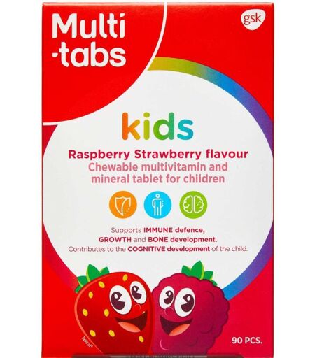 Multi-tabs Kids Hindbær/Jordbær Kosttilskud 90 stk