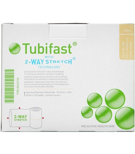 Tubifast 2-WAY Stretch er en elastisk letvægts-tubebandage, der kan strækkes både i længden og bredden. Til fiksering af bandager og våd eller tør "wrapping". Produktet er fremstillet af viskose med meget fine tråde af elastan, der er strikket ind i stoffet horisontalt og vertikalt for at give det en let elasticitet. Bemærkning Holdes ren. Hvis der er synlige kropsvæsker, skal produktet bortskaffes på korrekt vis og erstattes.Undgå åben ild og antændelseskilder.Hvis tilstanden forværres, skal brug af produktet ophøre, og læge søges.Til flergangsbrug på én patient. ...