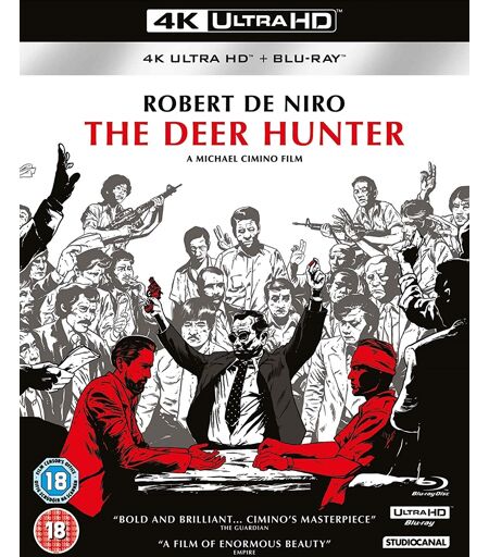 Michael Cimino's epic masterpiece The Deer Hunter has been stunningly restored with a brand new 4k restoration. Winner of no less than five Academy Awards in 1978 including Best Picture, Best Director and Best Supporting Actor for Christopher Walken, The Deer Hunter is widely acknowledged as one of cinema's great masterpieces and contains some of the most memorable scenes in film history. With the film painting a sobering portrait of a small Pennsylvania steel town rocked by loss when three of its sons go off to fight in Vietnam, Cimino's ambitious and daring vision is showcased in this bold and brilliant war classic - that, 40 years on, is even more striking than ever before. When Michael (Robert De Niro), Steven (John Savage) and Nick (Christopher Walken) are captured by the Vietcong, they are forced to play Russian Roulette by their brutal captors, who make bets on their survival. The experience of capture leaves them with terrible physical and spiritual wounds, and when Michael returns to Saigon to fulfil an old promise to one of his friends, he makes an unexpected, horrific discovery. Also featuring astonishing performances from Meryl Streep as the woman both Michael and Nick fall in love with, and John Cazale (The Godfather, Dog Day Afternoon) as their unhinged and insecure friend Stan. For the restoration of The Deer Hunter, STUDIOCANAL went back to the original 35mm negative, which was scanned at 4K resolution in 16bit. The restoration was completed at Silver Salt in London, who created a restored 4K DCP and UHD version for the home entertainment release. Bonus material includes: New Interview with David Thomson - film critic A brand new and exclusive interview with author and film critic David Thomson 1979 ITV South Ban Show interview with Michael Cimino A rarely seen ITV South Bank Show Interview from 1979 with director Michael Cimino provides an in-depth analysis of his inspirations and motivations for the making of the film Realising The Deer Hunter - Interview with director Michael Cimino Shooting The Deer Hunter - Interview with director of photography Vilmos Zsigmond Playing The Deer Hunter - Interview with star John Savage Audio Commentary with Michael Cimino Audio Commentary with Vilmos Zsigmond and journalist Bob Fisher Deleted and Extended scenes Deleted and extended scenes from the original production including extra footage of the infamous Russian Roulette sequence. ...