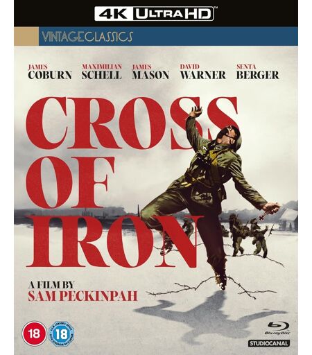 Based on the novel by Will Heinrich, Sam Peckinpah’s only war film is an intense and uncompromising affair that brilliantly reflects both the futility of conflict and the director’s fascination with individuals confronted by events beyond their control. A World War II tale told from the German perspective, Cross Of Iron follows a platoon of German soldiers in Russia when the German Wehrmacht forces had been decimated and the Germans were retreating along the Russian front. Rolf Steiner (James Coburn) is a German corporal and recipient of the Iron Cross who has grown disenchanted with Hitler’s war machine. When Captain Stransky (Maximilian Schell) assumes charge, the pair are thrown into immediate conflict, the autocratic but ultimately cowardly Stransky coveting the loyalty and honour Steiner commands. Evocatively shot by John Coquillon (Billy the Kid) in sombre tones to emphasise the horrors of combat, the superlative lead performances are matched by David Warner and James Mason as war-weary senior officers. Viewed as one of Peckinpah’s most powerful works, it’s an unflinching vision of the Second World War. Extras: UHD & Blu-Ray Disc 1 • Audio Commentary by filmmaker and film historian Mike Siegel • NEW Promoting STEINER • NEW STEINER on the set • NEW Filming STEINER • NEW Filming STEINER pt 2 • NEW STEINER in colour Blu-Ray Disc 2 • On Location: Sam Peckinpah • On Location: James Coburn • On Location: Maximillian Schell • On Location: James Mason • On Location: David Warner • Passion and Poetry: Sam Peckinpah's War • Kruger Kisses Kern • Vadim & Sam: Father & Son • Cutting Room Floor • Steiner in Japan: Ads filmed in 1977 • Mike's Home Movies: Steiner & Kiesel Meet Again • US/UK Trailer • German Trailer • US TV Spot ...