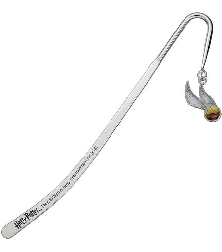 Bogmærke i metal med en charm hængende fra krogdelen. Charmsen er det Gyldne Lyn (The Golden Snitch) fra spillet Quidditch i Harry Potters magiske verden. Længde: cirka 14cm ...