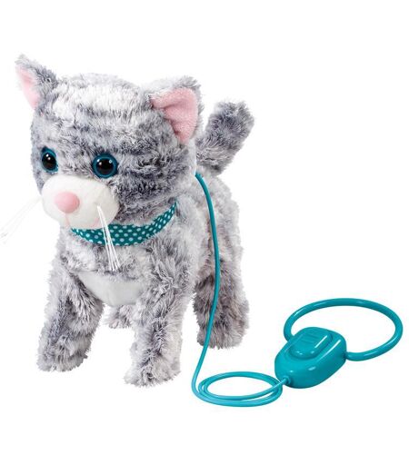 Den här katten i koppel älskar kramar, promenad och att leka med sin nya bästa vän! När det är dags för en liten promenad ska du ta hundkoppelkontrollen i handen och trycka på knappen, så kommer katten att visa hur tacksam den är genom att svänga med svansen och jama. När det är tid till att gå i säng, kan du använda förpackningen som kattens mysiga hem, där den kan falla i sömn efter en spännande dag. Batteri: 3 x AA batterier (ingår). Från 3 år. ...