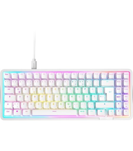 NZXT FUNCTION Elite MiniTKL-gamingtastaturet har avancerede justerbare magnetiske kontakter og det højeste niveau af byggekvalitet, der tilbyder tilpasselig gaming-ydeevne med en behagelig taktil følelse. Justerbare magnetiske kontakter med kraftfulde Hall-effektsensorer og ultralav latenstid leverer den hastighed og præcision, der er afgørende for konkurrencedygtigt spil. Følsomheden af de enkelte taster kan justeres fra 40 individuelle punkter i et område på 0,6 til 4,0 mm vandring (fra en flad berøring til et dybt tryk), så den passer til ethvert spil eller spillestil. 8K-afstemningshastigheden sikrer lynhurtige input med næsten ingen latenstid, så kommandoer i spillet implementeres med det samme. FUNCTION Elite MiniTKL er inspireret af entusiasttastaturer og er fremstillet af førsteklasses materialer – såsom Double-Shot PBT-taster, forsmurte kontakter, et CNC-bearbejdet aluminiumshus og indskruede stabilisatorer – for en jævn skriveoplevelse med behagelig akustik. To parallelle skinner styrer kontakten jævnt og præcist, hvilket forhindrer slinger, hvilket resulterer i et mere stabilt og ensartet tastetryk. Dens MiniTKL-størrelse på 75 % giver alle tasterne på et konventionelt TKL-tastatur på de mindste pladser. Med NZXT CAM-softwaren kan FUNCTION Elite MiniTKL også udnyttes fuldt ud med sin levende RGB-belysning og programmerbare knapper. ...