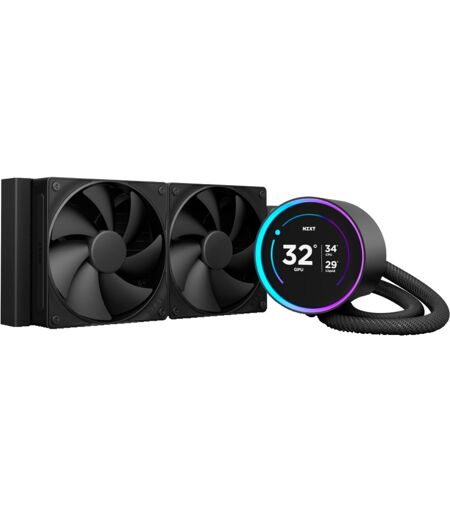 Kraken Elite er et vandkølesystem med en fantastisk 7 cm IPS-skærm med en skarp opløsning på 640x640 inklusive en dynamisk RGB-ring. NZXT Turbine-pumpen øger CPU-køleydelsen, mens skærmen tilbyder ubegrænsede personaliseringsmuligheder. Favorit GIF eller billede, systemydelse i realtid eller Spotify, YouTube og mere. RGB-ringen kan tilpasses med dynamiske lyseffekter eller synkroniseres med indhold på skærmen og andre RGB-enheder. Ventilatorerne kører ved højt statisk tryk og giver dermed en stærk luftstrøm, men i Zero RPM-tilstand er der stilhed ved lav belastning. Kraken Elite tilbyder nem og værktøjsfri montering til de nyeste Intel- og AMD CPU-stik. Forlængede gummislanger med flettet kappe giver ekstra holdbarhed og problemfri håndtering. ...