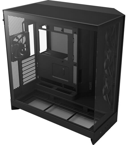 H9 Flow er et kraftfuldt mid-tower-kabinet, der pakker højtydende køling ind i en imponerende æstetik. Dens rummelige layout med to kammer optimerer luftstrømmen og forenkler kabelstyringen, mens de omsluttende hærdede glaspaneler viser din bygning fra alle vinkler. Understøttelse af to 420 mm kølere og flere 140 mm blæsere, herunder Strategisk vinklet blæser på højre side foran garanterer køling i topklasse, selv for den mest krævende hardware. Kabinettet understøtter to 420 mm kølere og op til ti blæsere (ni 140 mm store, en 120 mm store) til den største kølepotentiale. Ekstra brede kanaler, fastgørelsespunkter og velcrostropper forenkler kabelhåndteringen for en ryddelig konstruktion. Fuldt kompatibel med ASUS-, Gigabyte- og MSI-bundkort med back-connect for en ryddelig og trådløs æstetik. En speciel drejelig klap giver nem adgang til op til fire SSD''er og ubesværet installation. ...