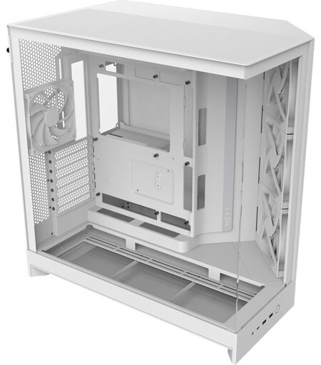 H9 Flow er et kraftfuldt mid-tower-kabinet, der pakker højtydende køling ind i en imponerende æstetik. Dens rummelige layout med to kammer optimerer luftstrømmen og forenkler kabelstyringen, mens de omsluttende hærdede glaspaneler viser din bygning fra alle vinkler. Understøttelse af to 420 mm kølere og flere 140 mm blæsere, herunder Strategisk vinklet blæser på højre side foran garanterer køling i topklasse, selv for den mest krævende hardware. Kabinettet understøtter to 420 mm kølere og op til ti blæsere (ni 140 mm store, en 120 mm store) til den største kølepotentiale. Ekstra brede kanaler, fastgørelsespunkter og velcrostropper forenkler kabelhåndteringen for en ryddelig konstruktion. Fuldt kompatibel med ASUS-, Gigabyte- og MSI-bundkort med back-connect for en ryddelig og trådløs æstetik. En speciel drejelig klap giver nem adgang til op til fire SSD''er og ubesværet installation. ...