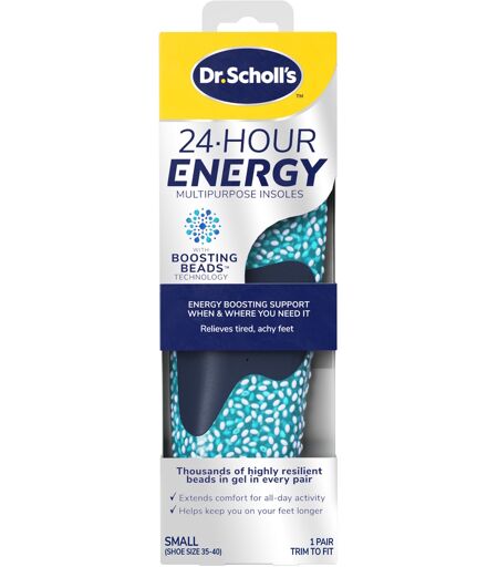 Dr. Scholl's 24-Hour Energy Multipurpose Insoles er specielt designet til folk, der ønsker at bevæge sig mere. Disse indlægssåler hjælper med at lindre trætte, ømme fødder og forhindre ømhed i musklerne i at opstå ved at fordele tryk og returnere energi med hvert skridt - så du føler dig mere energisk hele dagen, hver dag! Ved at bruge verdens første Boosting Beads-teknologi med gel og hukommelse skum, omfavner indersålen hele din fod, så du føler dig, som om du går på små, energiforstærkende bobler. De er drevet af tusindvis af højspændstigt skum Boosting Beads, der er indkapslet i en fleksibel gel, der giver energiforstærkende støtte, hvor og når du har mest brug for det. Med et toplag af Memory Foam-dæmpning, der passer til din fod. I modsætning til enhver anden almindelig sko-indlægssål er 24-timers Energy Multipurpose-indlægssålerne designet til at give mere støtte og energiudbytte. Bær disse indlægssåler i enhver sko, mens du går, løber eller træner - eller endda bare for at hjælpe dig med at holde dig på fødderne, mens du kommer igennem din daglige to-do-liste. Klinisk bevist at give langvarig komfort og reducere træthed, selv på din længste dag. Farvel trætte, ømme fødder - Hej 24-timers energi! Størrelse Small passer en størrelse 35-40. ...