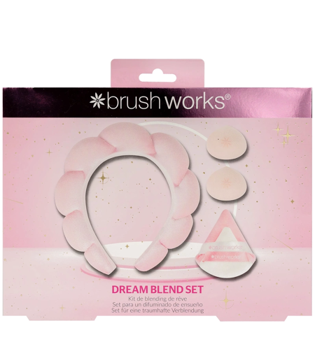 Brushworks Dream Blend Set er et blending-sæt, som indeholder alt, hvad du behøver for at opnå et perfekt, fejlfrit look. Det bløde, sky-lignende hårbånd holder dit hår skånsomt og komfortabelt væk fra ansigtet, mens du lægger makeup, så du kan fokusere på det vigtigste – din glød. De to makeupsvampe sikrer en jævn og naturlig applikation af foundation, mens de trekantede pudderpuffs giver en professionel setting-effekt, der holder din makeup på plads hele dagen. Forkæl dig selv eller en du holder af med denne eksklusive gaveæske, og opdag, hvordan redskaberne kan gøre en stor forskel for din skønhedsrutine. Sættet indeholder: 1 stk. Pink Cloud Hårbånd 2 stk. Blending Drops 2 stk. Powder Puff´s ...