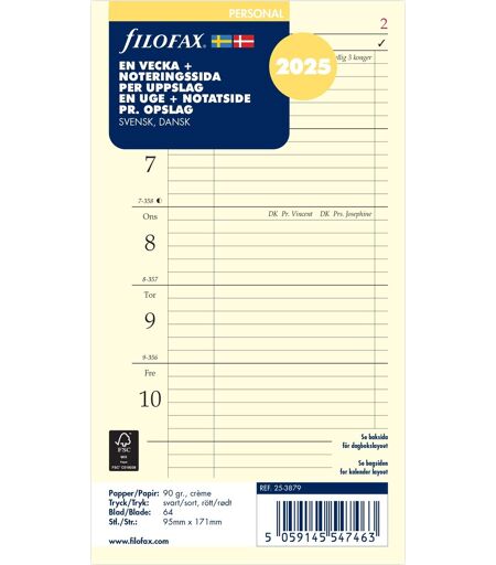 Filofax 2025 Refill Personal Uge Pr. Opslag